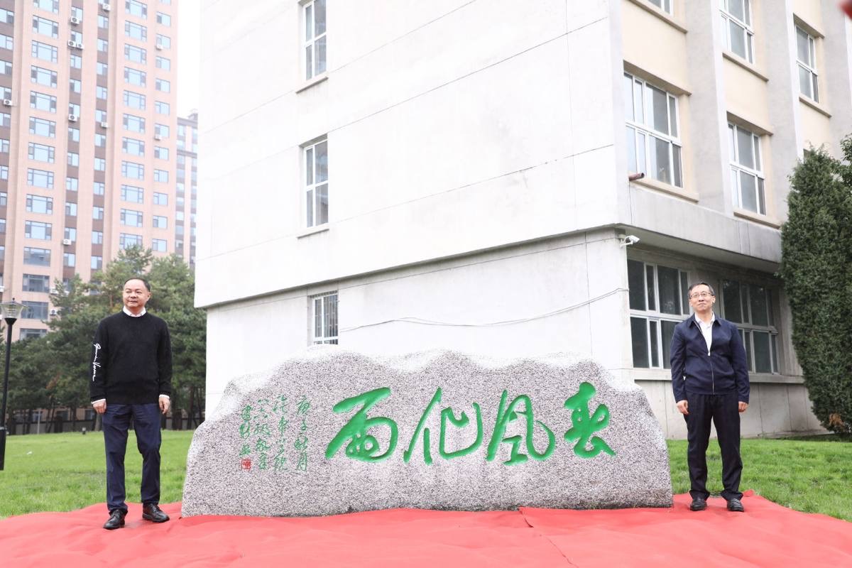 最后,边铁副校长、郑建新市长共同为校友捐赠的纪念石碑揭幕。“春风化雨”,润物无声。校友们对母校的关心就像柔风和细雨,不断地滋润着母校;母校也无时无刻不在牵挂着校友,为校友们的奋斗拼搏而祝福。