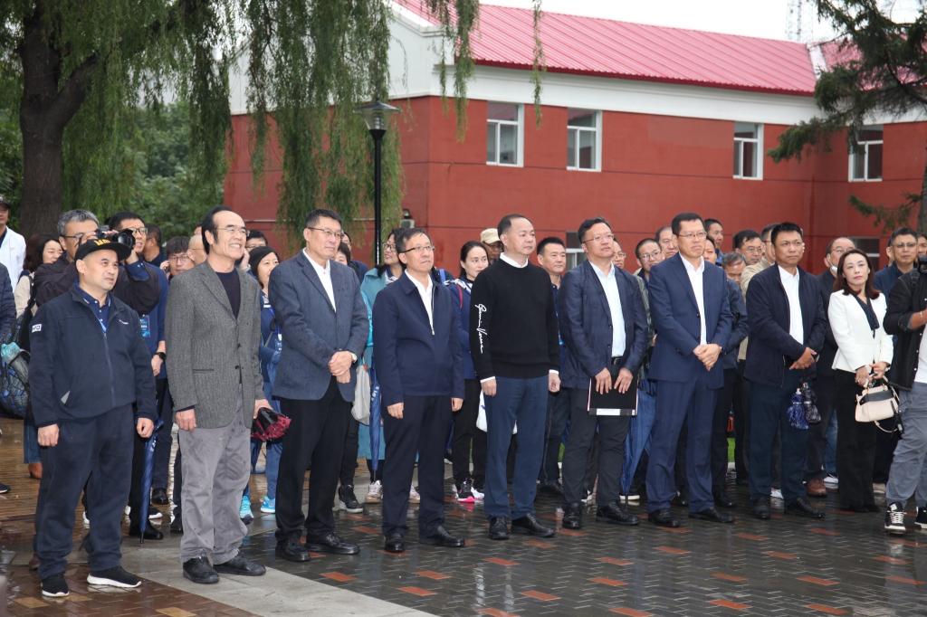 纪念仪式之后,校友们在图书馆前合影留念,并在校园内进行参观。