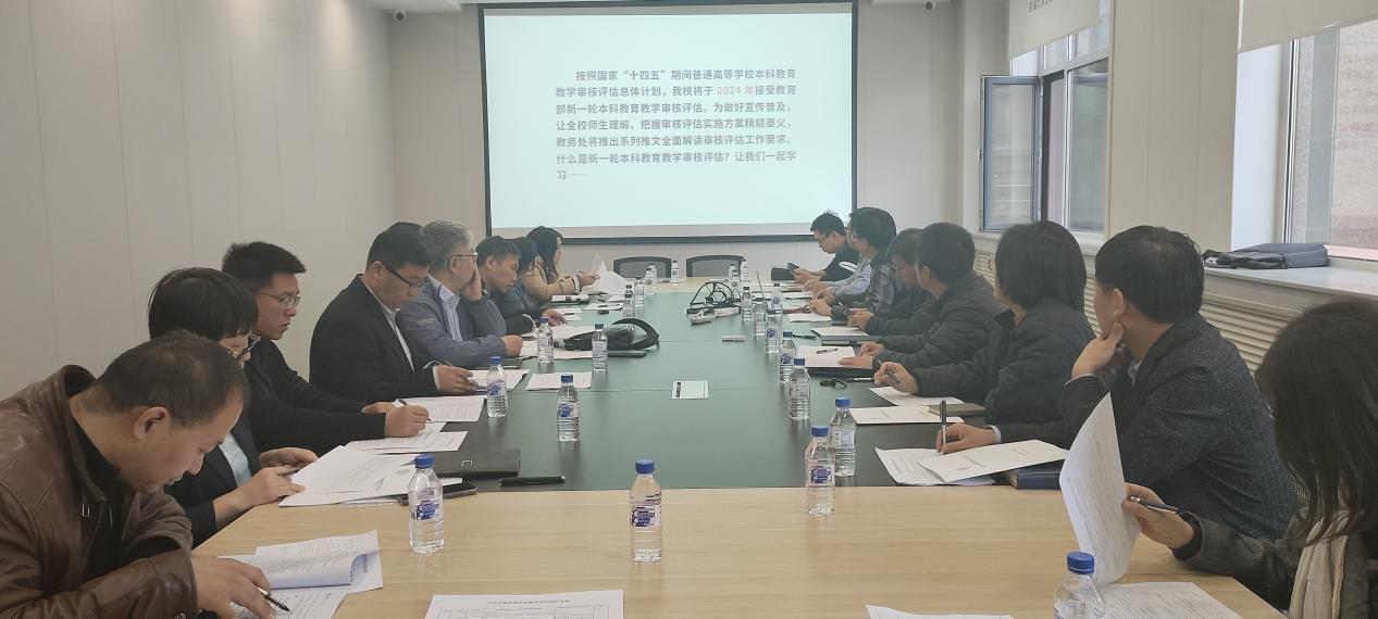 随后,学院教务办公室主任矫承轩详细介绍了学校审核评估的整体安排,并结合学院实际情况,将审核评估工作指标要点落实到学院的各科室及专业。会议还就如何做好本科教育教学审核评估自评工作以及审核重点内容进行了深入的讨论。大家一致认为,要做好自评工作,必须坚持问题导向,找准问题,找对方法,确保自评工作的实效性。