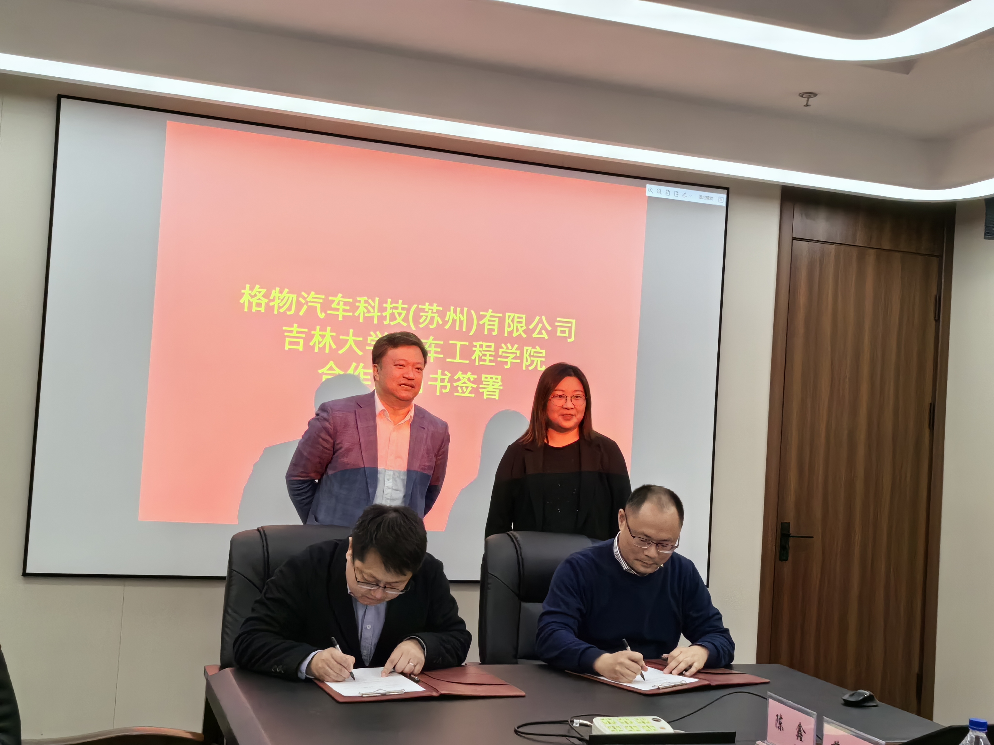 格物汽车科技(苏州)有限公司的杜光辉总经理介绍了公司发展历程、核心成果等情况,并与学院团队签订合作意向书。