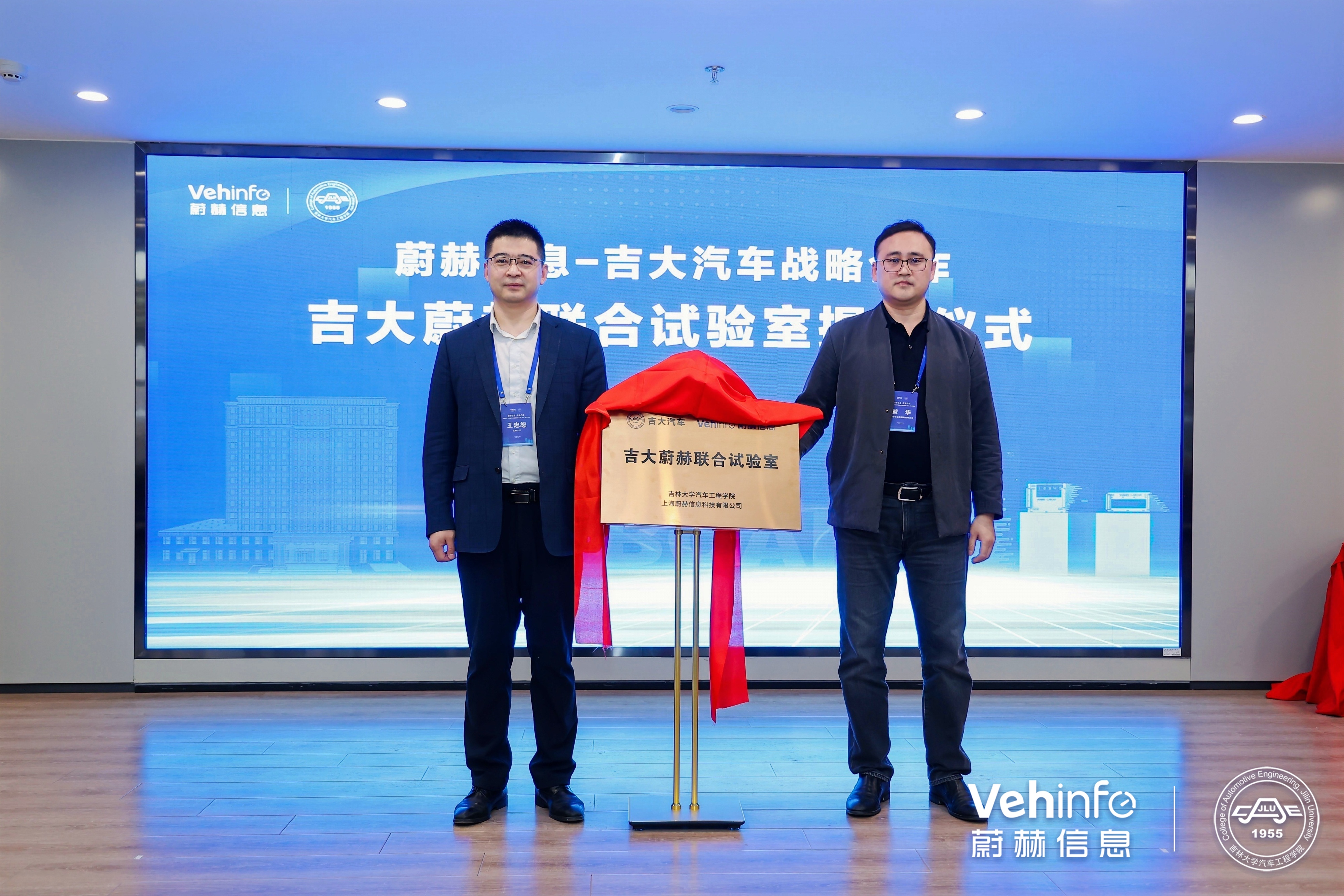 学院副院长王忠恕与蔚赫信息副总经理虢华为吉大蔚赫联合试验室揭牌;学院党委书记黄忠华与蔚赫信息副总经理虢华共同为学院获得“蔚赫”优秀青年教师奖的两位教师颁发荣誉证书。