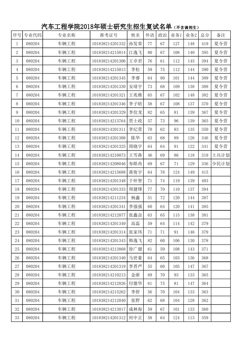 pp电子游戏平台网站2018年硕士研究生招生复试名单(不含调剂生)