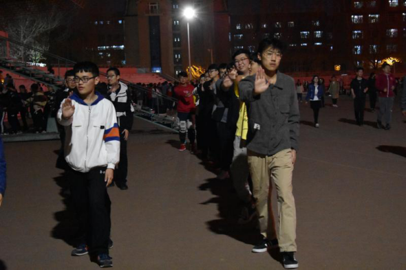 4月23日晚上9点,同学们聚集在田径场开始第一次训练。教练给同学们讲解了本次训练的目的和背景。同学们纷纷表示要好好对待这次比赛。接着,接近一百人的练拳同学分为了两队开始训练。教练细心地演示了没一个动作,并讲解了动作的要领,同学们也都跟在教练后面边学边模范。经过几天的训练,同学们已经可以初步完整地做一套动作了。然后,教练们根据同学的表现指出他们的不足。同学们在接下来的一次次训练中不断纠正错误,将动作标准化。