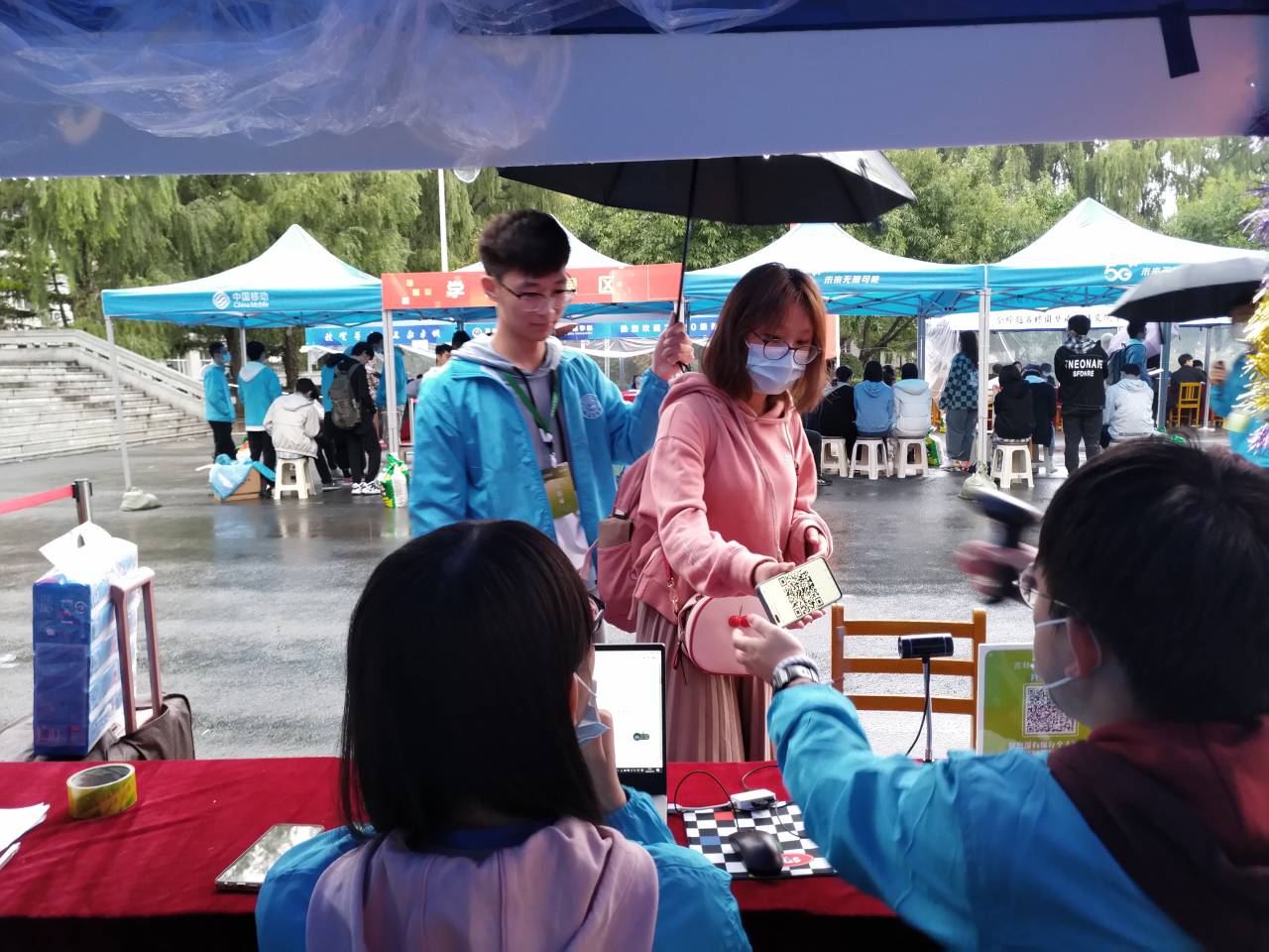 九月十八日,迎新工作依然井然有序地开展。在辅导员老师的指导下,志愿者们早早地做好了准备,来到迎新地点布置会场,分布于各个接待点等待着学院的新面孔,有条不紊地展开迎新工作。在一天的迎新工作中,大部分新生都顺利报到,入住宿舍。志愿者们认真负责,耐心地为新生服务。新生一进入校园,就有统一着装的热心志愿者前来引领。志愿者们用微笑温暖新生,让新生感受到离家求学并不孤单。迎新现场还设立了咨询点。老师和各级辅导员们在现场慰问新同学,帮助同学们解决初来乍到的疑惑。九月十八日上午九时,pp电子游戏平台网站党委书记姜治莹,党委副书记冯正玉莅临南岭,慰问迎新教职工和学生志愿者,视察新生报到情况,并检查新生接待点疫情防控情况。姜书记亲切地慰问了前来报到的新同学,并向学院双胞胎新生发放了新生纪念品。
