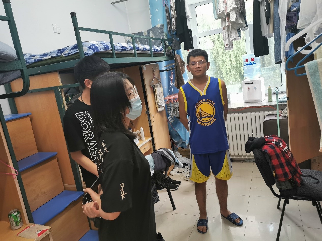 为关心同学们的健康及学习情况,督促同学们配合学校疫情防控工作,pp电子游戏平台网站于8月24日对南岭校区学生十三公寓进行了寝室检查,学院2019级辅导员李佳琦老师参与了查寝工作。