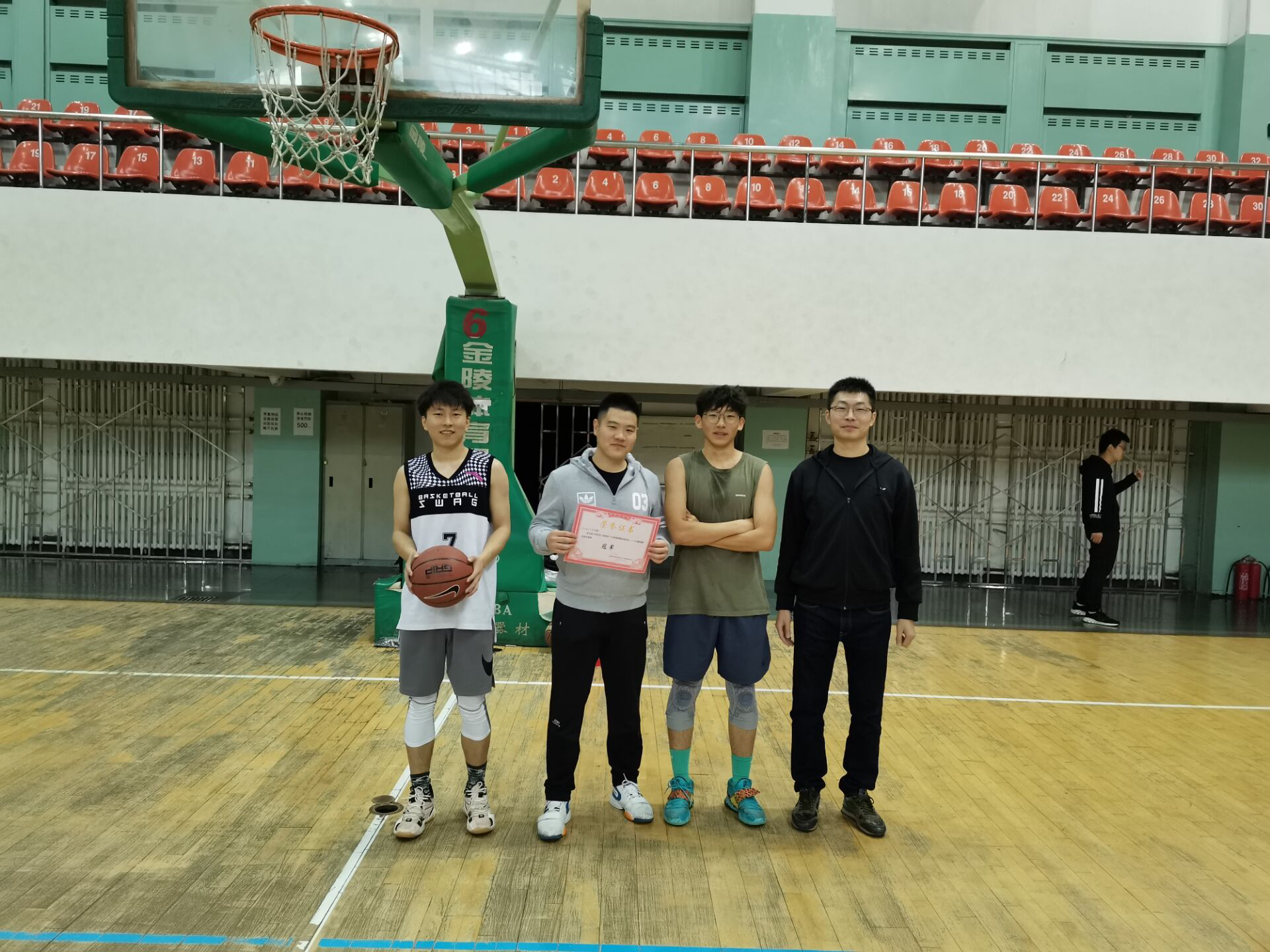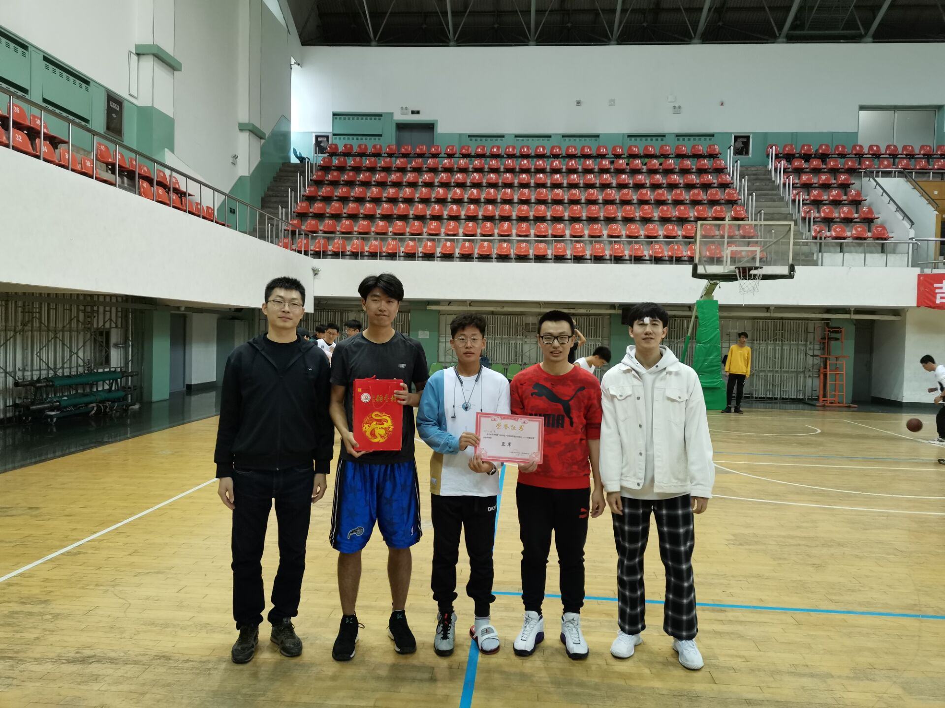 经过三天的激烈角逐,pp电子游戏平台网站“球团圆”系列篮球赛终于迎来了最终的决战。2020年10月5日中午12时,大家期待已久的篮球决赛决赛如期举行,pp电子游戏平台网站学生工作办公室负责人李季老师亲临现场为最终的冠军颁发证书和奖品。